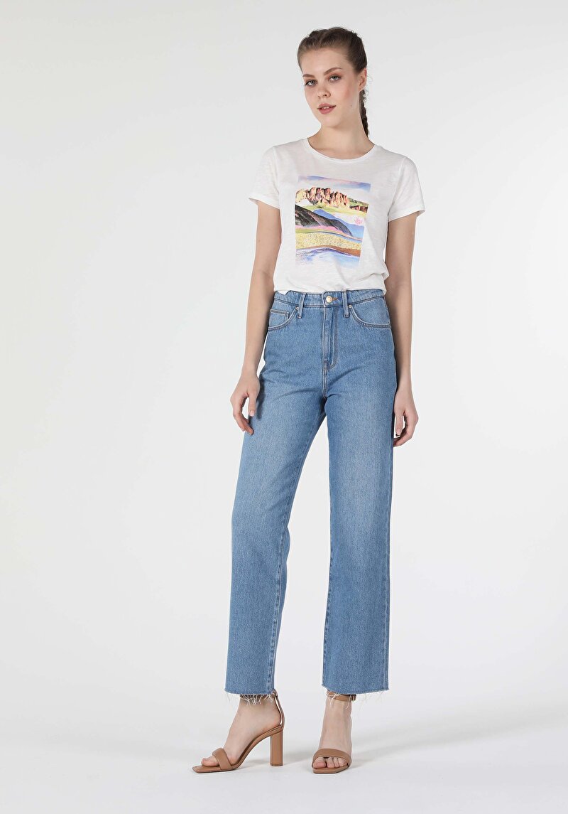 Slim Fit Rising Waist Shrinking Leg Blugi İndigo Pentru Femei