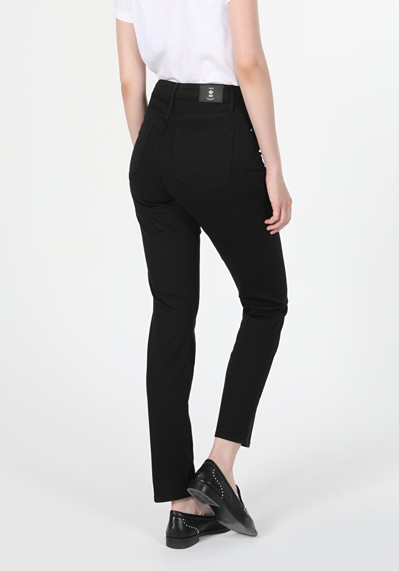 Slim Fit Mid Waist Slim Leg Blugi Negri Pentru Femei