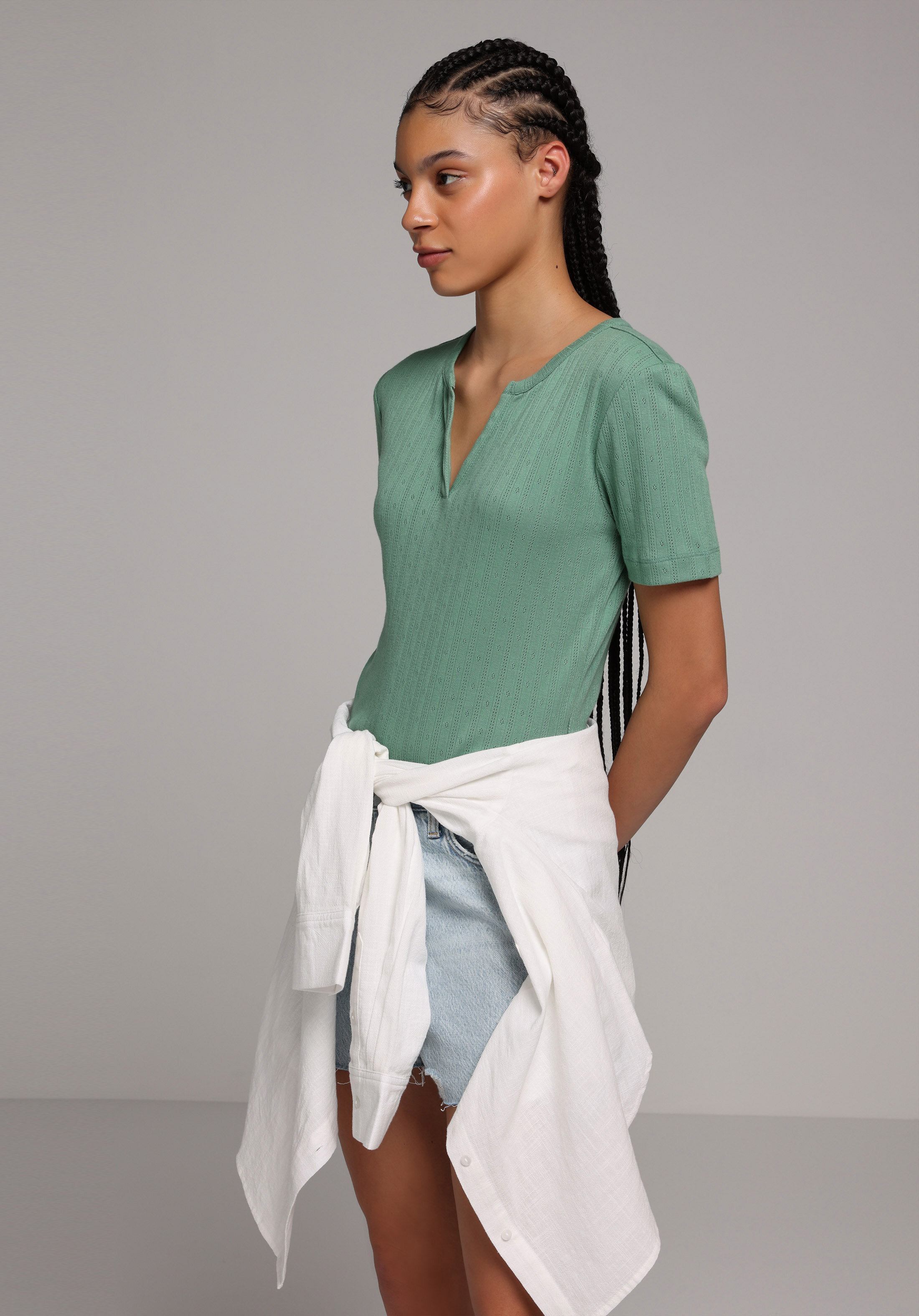 Bluza Cu Maneca Scurta De Dama Verde Slim Fit Cl1079028