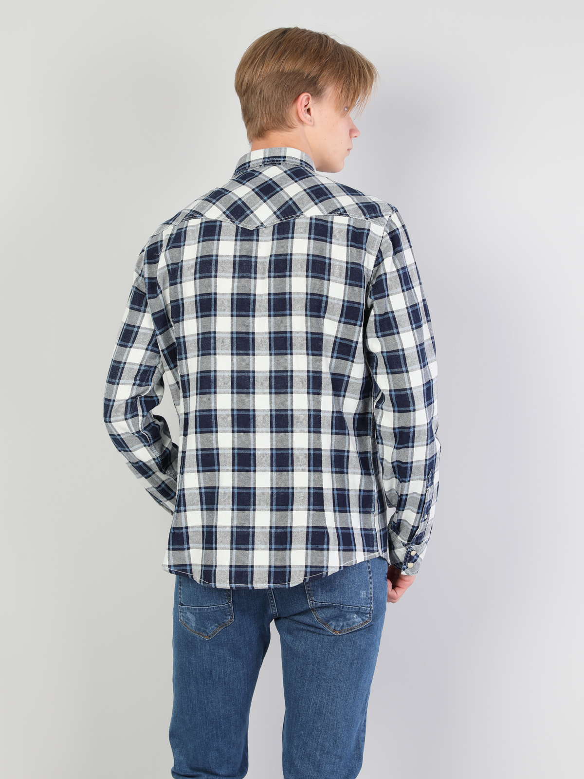 Gulerul Cămășii Barbati Albastru İnchis Camasa Cu Maneca Lunga