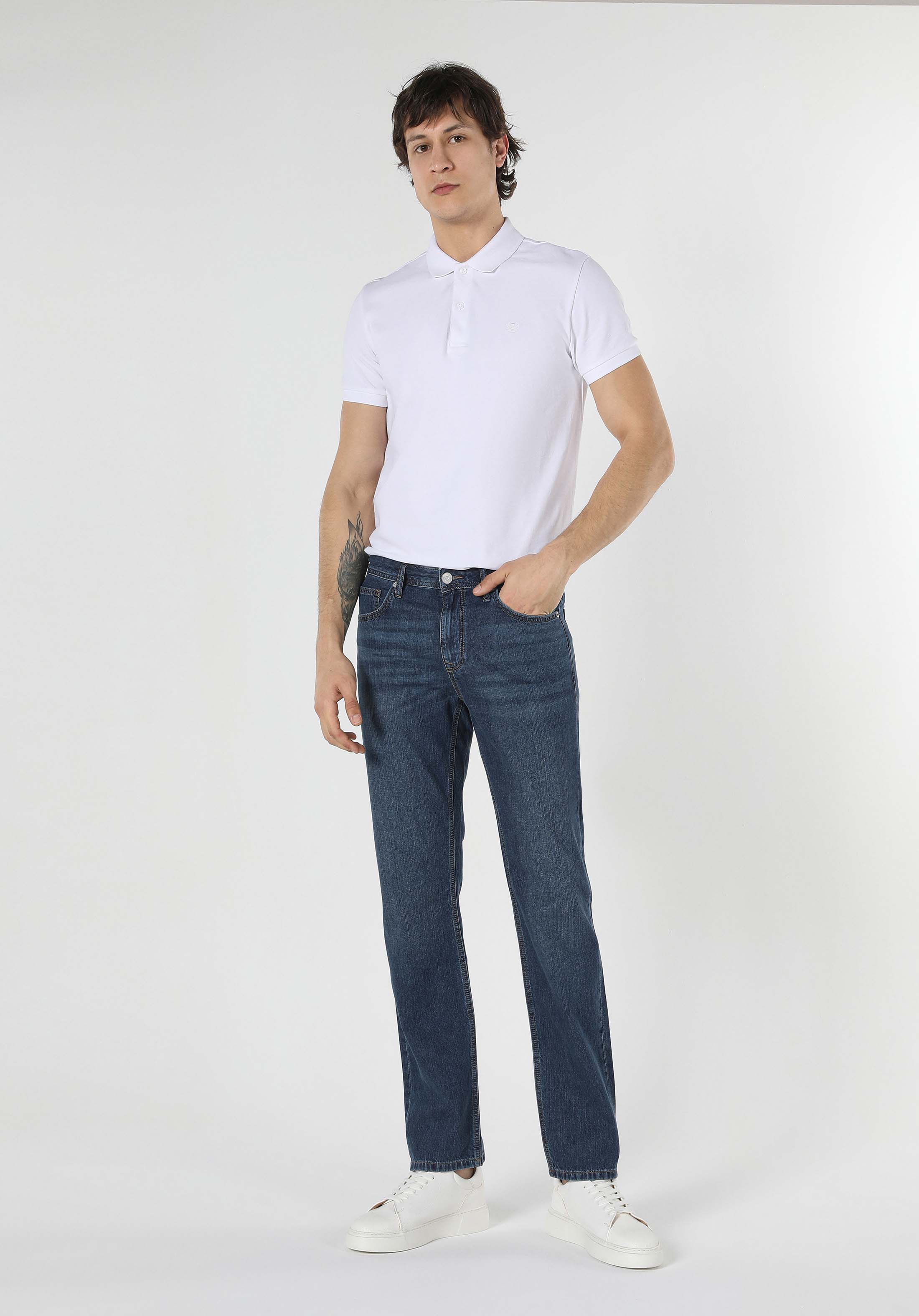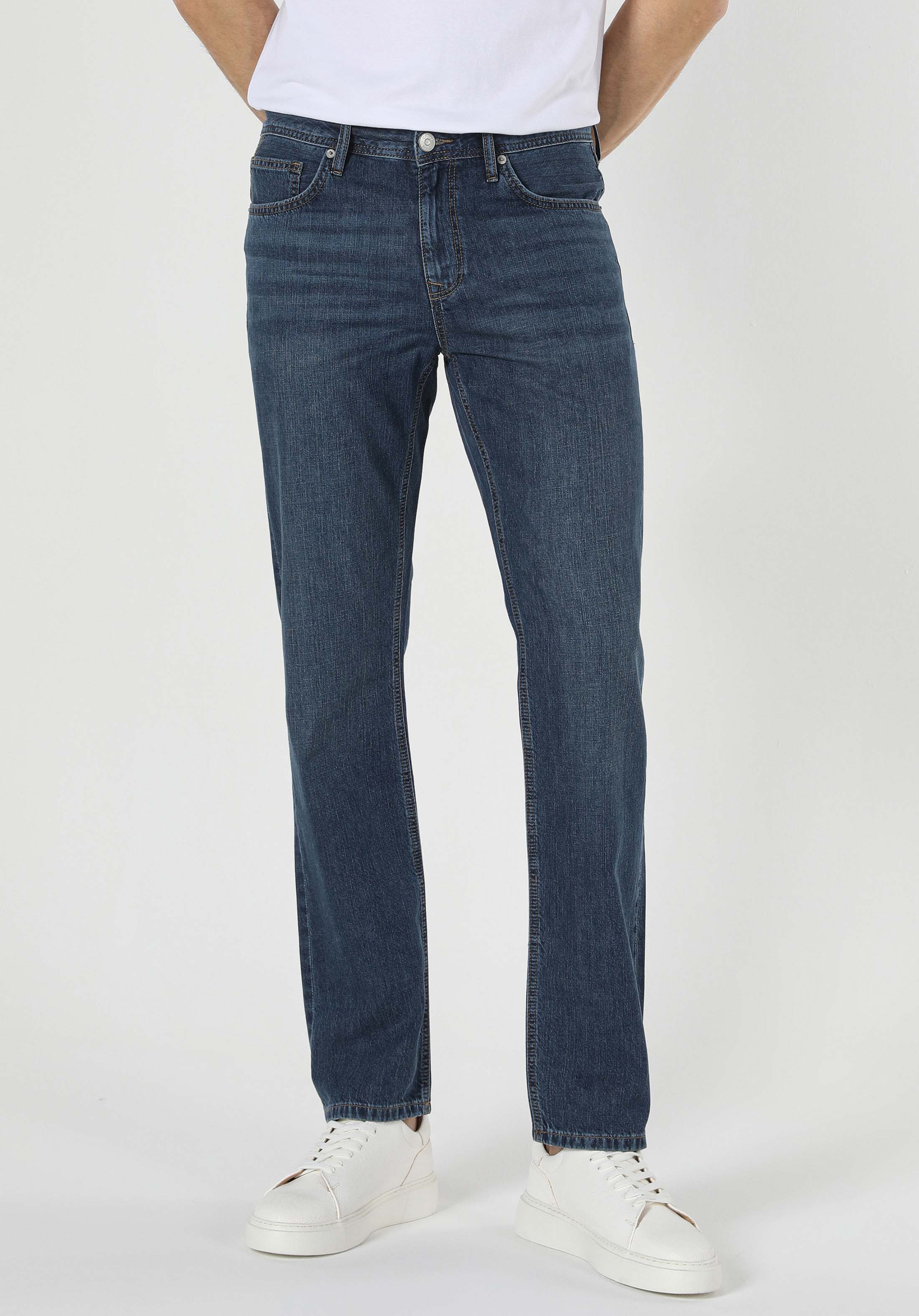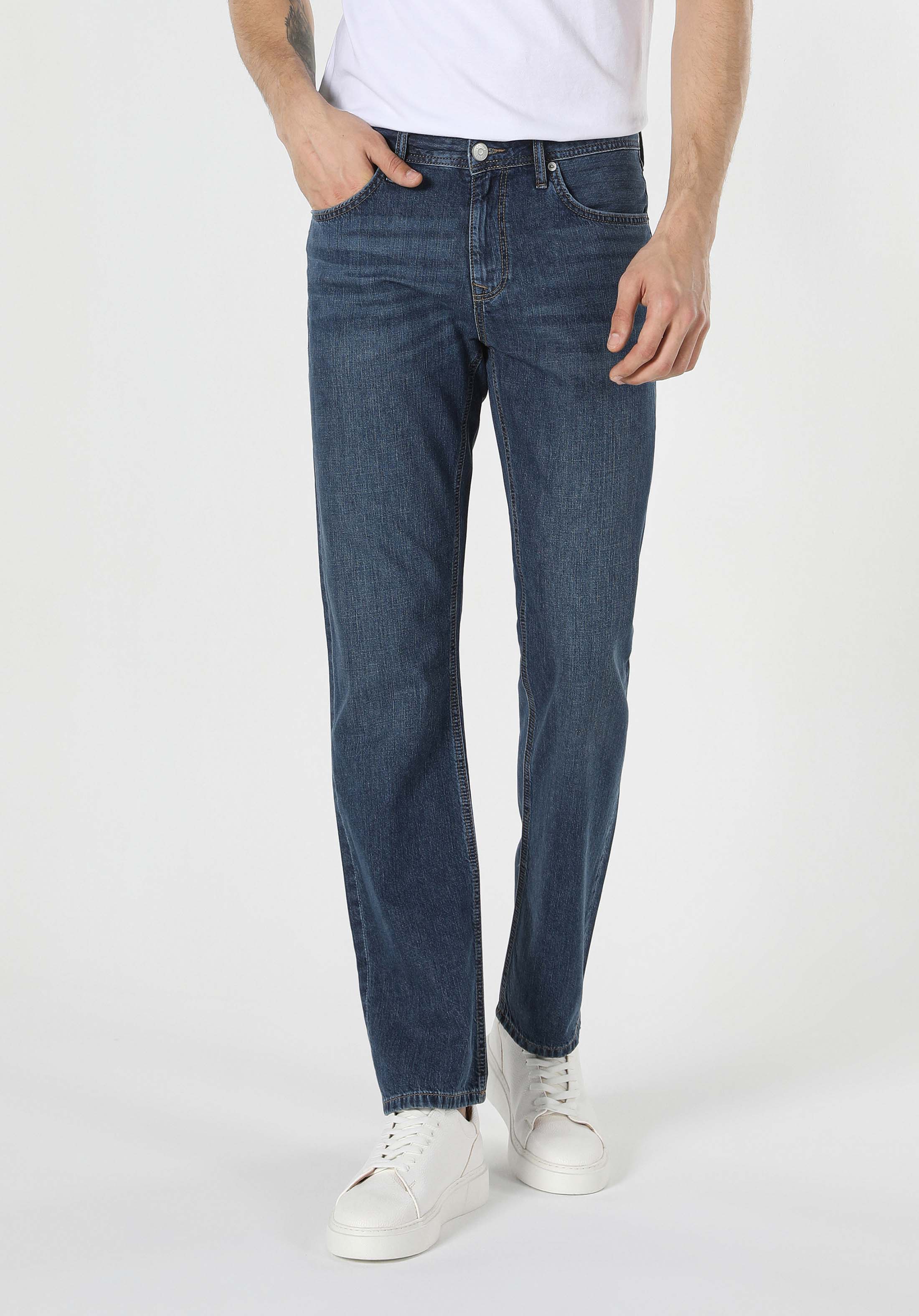 Blugi De Barbati Cu Talie Medie Regular Fit Albastru Inchis 045 Davıd