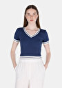 Pulover Cu Mâneci Scurte De Dama Albastru Marin Slim Fit Cl1074589
