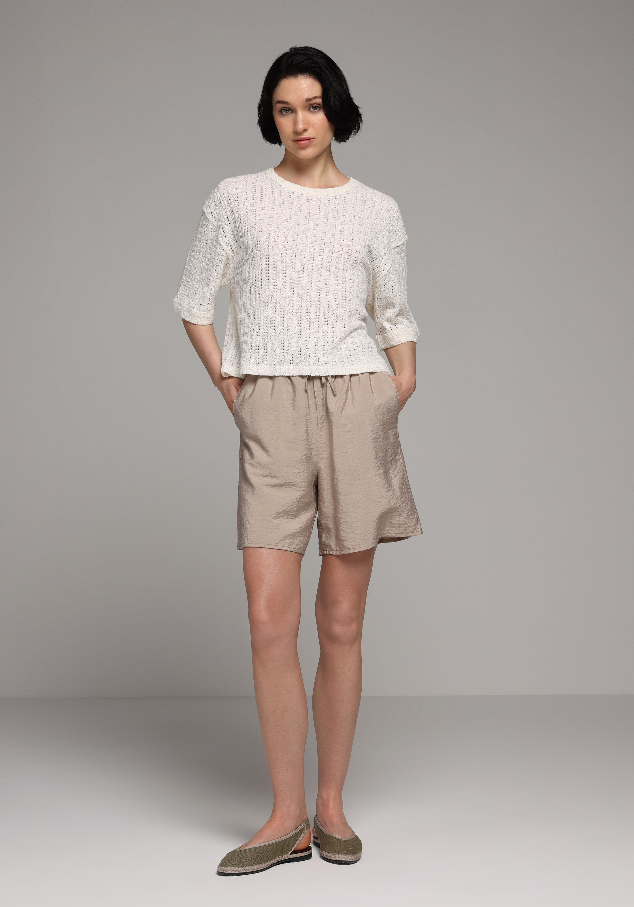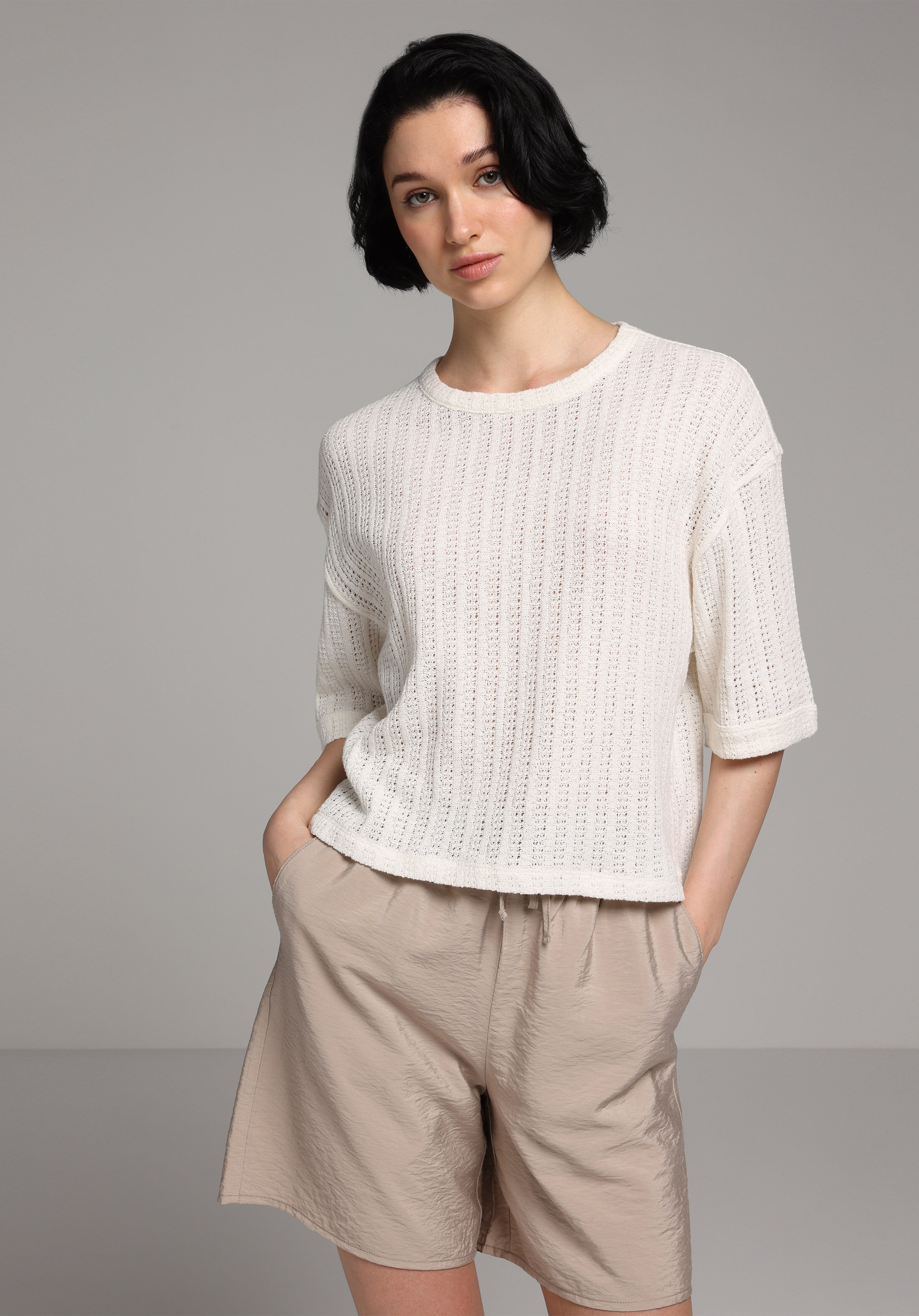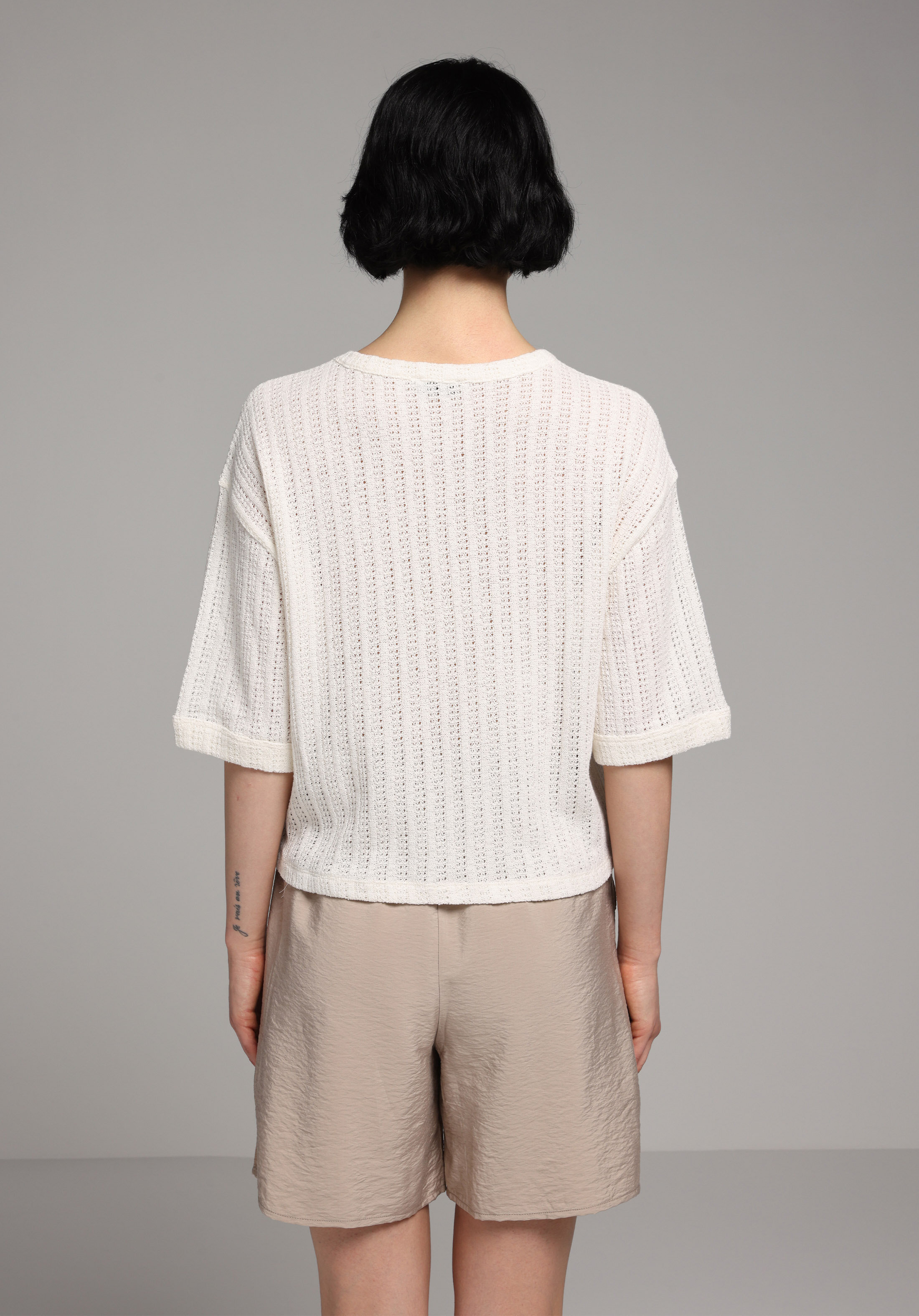 Afișați detalii pentru Pulover Cu Mâneci Scurte De Dama Ecru Regular Fit  Cl1077294