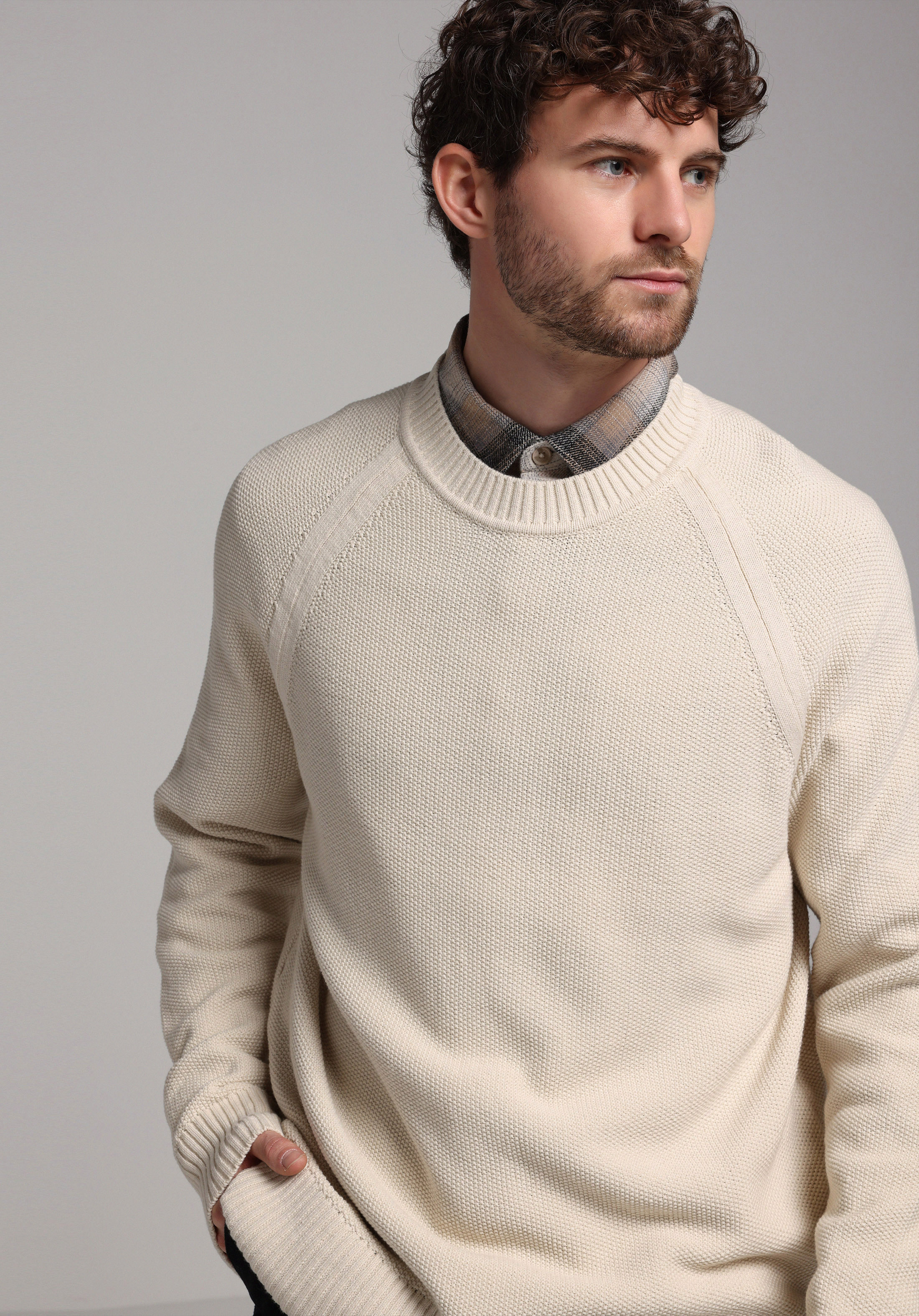 Pulover De Barbati Ecru Regular Fit Cl1077457