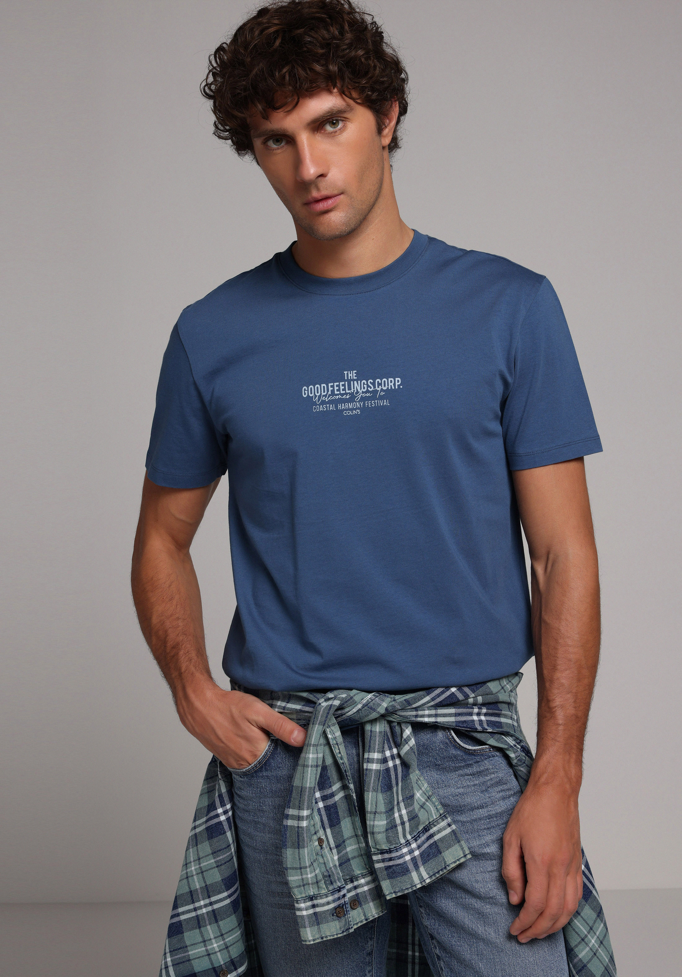 Afișați detalii pentru Tricou Cu Maneca Scurta De Barbati Albastru Regular Fit  Cl1079726