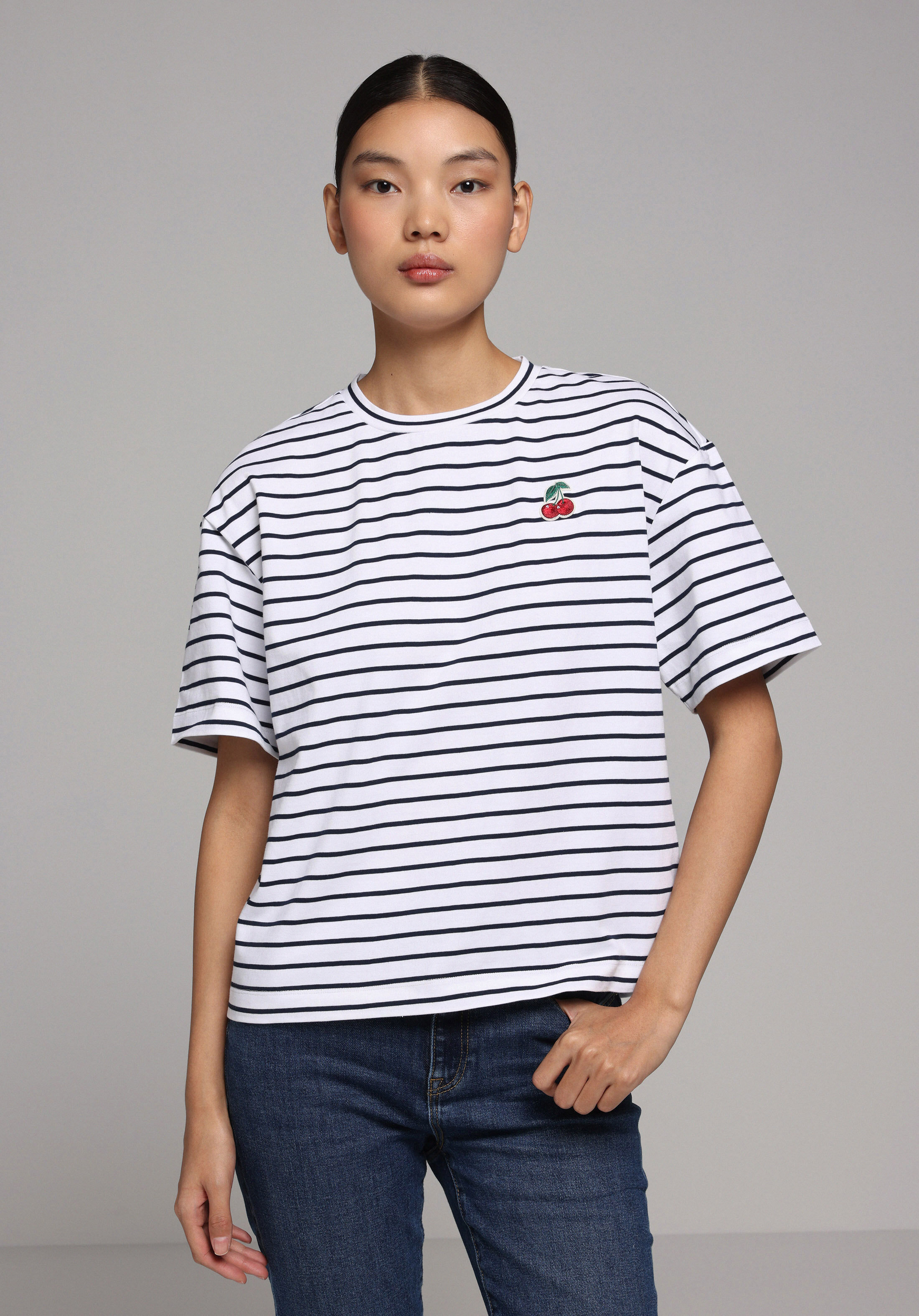 Afișați detalii pentru Tricou Cu Maneca Scurta De Dama Albastru Marin Boyfriend Fit  Cl1078726